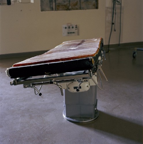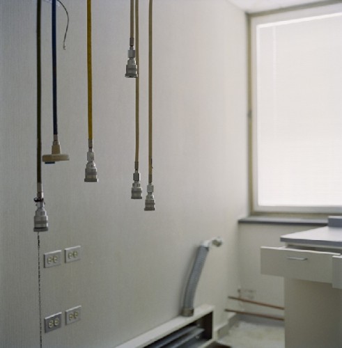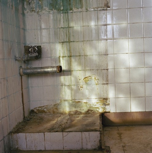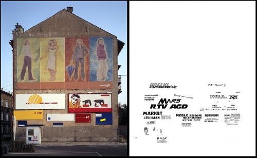 In this exhibition I found myself particularly drawn into Mary Farmilant's selectively focused, square images of an empty hospital. As we contemplate a worn operating table, a decaying shower, or a empty room, we feel like solitary visitors wandering about this rather sinister building. I could also enter into Brian Ulrich's cynical, but humane vision of retail stores, in which we encounter a rack of plastic crucifixes and an elderly lady, probably Polish, critically examines plastic-wrapped celery in front of a supremely tacky balloon with a picture of a smiling girl surrounded by cartoonish flowers. In these his reliance on Andreas Gursky is both obvious and explicit, but he brings his own more emotionally sympathetic vision to his photographs. Greg Stimac's images of American gun-culture are appropriately scary. Enjoying one's arsenal appears as a family activity in these scenes, in which children cringe or hold their ears behind the happy marksmen. Matt Siber is represented by images from "The Untitled Project," in which he has used Photoshop to remove the texts from logos and signs to draw "attention to the role text plays in the modern landscape," and to emphasize "alternative forms of communication such as symbols, colors, architecture and corporate branding," as well as "the growing number of ways in which public voices communicate without using traditional forms of written language." Most intriguing was a wall of Polish adverts (in Poland, not Chicago!) with text removed and shown in a separate image. Jonathan Gitelson photographed his own car plastered with handbills, and portraits of likely applicants for improbable classified job ads, e.g. "rock star" and "oceanographer." Well, the show is about young photographers.