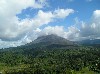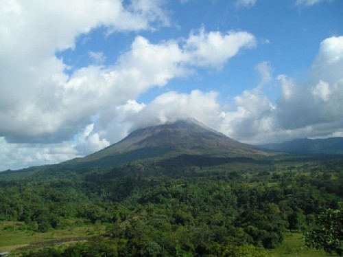 The Arenal Volcano with its crater top appeared 40km before we reached La Fortuna. A road stop introduced us to orange iguanas, indicating it was the mating season, when males change color. Families of iguanas with long tails, which they whip for protection, languished on tree branches. People with machetes harvested sugar cane in the fields. La Fortuna welcomed us with a big sign for bungee jumping. Because of the city's proximity to the volcano, its main industry is tourism; souvenir shops surround the central park, facing the Catholic Church.