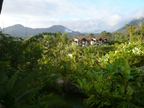 The Casa Luna Lodge, our home for the next two nights, was away from the commercial zone, in a spot with spectacular views of the volcano. I felt fortunate to have a second floor room with a balcony, from which I could view the cone-shaped volcano as its mist-shrouded look changed throughout the day. Of its four craters, only two are present. When pressure builds up inside the mountain, lava erupts, hardening into a ball upon contact with the air and then rolling down. Having awoken from a long dormancy in 1968, the volcano has since been constantly active. It is visible at a distance after dark on clear days.