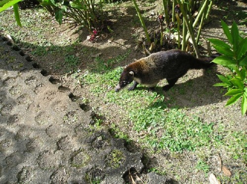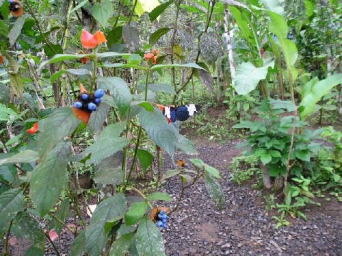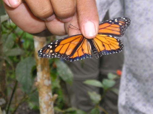 Our nature study continued with a visit to a butterfly farm. Costa Rica has more butterflies than the US and Europe combined. Each species has a host plant and lays eggs on the underside of its leaves for protection from rain. After hatching, a caterpillar grows to 10,000 times its original size by constantly eating, and then changes into a chrysalis. Monarchs fly between Canada and Costa Rica to avoid the seasonal poisonous secretion of their host plant. We walked around a netted area filled with flowering plants and livened by butterflies of all sizes and colors.