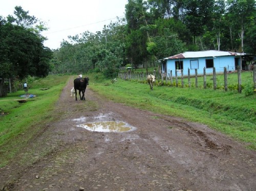 Leaving the Sarapiqui region, we circled toward Norte Lowlands to La Fortuna, a town nestled in view of Arenal volcano. Costa Rica sits on a tectonic plate with 292 volcanoes, seven of which are active; of these, Arenal is the most active. Driving by grazing beef cattle, papaya and skinny juca plants, we climbed to the village of San Miguel at 900 feet above sea level. It was Sunday; families were on their way to church. 60% of Costa Ricans are Catholic; every village in the country has a church, a school, a local bar and a Chinese restaurant, explained Pablo, whose grandfather was also Chinese. We could see Nicaragua behind the flat fields.