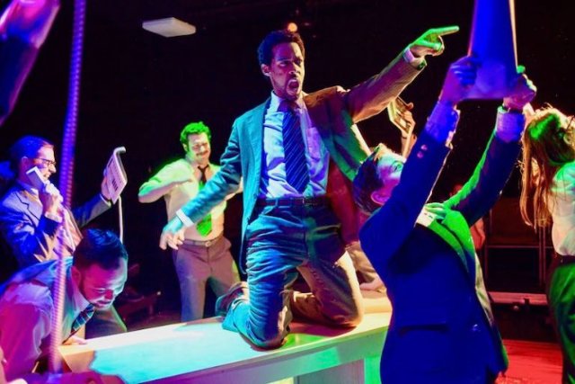 Broken Nose Theatre tells this story on a personal level in the U.S. premiere of Labyrinth by Beth Steel, cleverly directed by Spenser Davis, with so-essential choreography and movement direction by Davis and Ben F. Locke. Davis and Locke make the chaos of a trading room floor work like a modern ballet and swiftly move this fast-talking play from interview basics to bankruptcy in two acts.