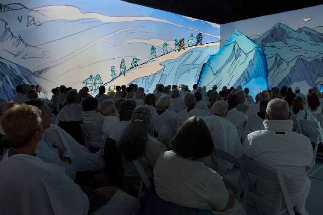 The quality of the musical performances is nearly flawless, delivered by a system that produces rich, full, spatially-mapped sound. It is outstanding recorded music, but it is not comparable to live opera. The voices of Nathan Granner, Hadleigh Adams, Kevin Burdette, and Sasha Cooke are electronically enhanced and presumably re-recorded until everything is just right. The chorus that represents the soul of the mountain sounds like 40 voices, but is four singers who are repeatedly overtaped. Rather than a traditional orchestra, the orchestral sound comes from MIDI (musical instrument digital interface).