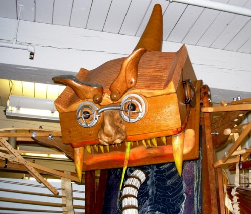 "When an artist sends us plans for a Dragon Boat we make it" he said. "Or we hang trees upside down and suspend Ford Taurus cars from the ceiling. I say 'we' because we are a team. You don't do it on your own. It's a funny old job and I'm the captain of the team."