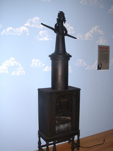 Describing the sculpture "Vocal Local" in which a cast bronze figure is mounted above a stove with a plug in simulation of a burning hearth he describes the terrifying source of inspiration. "No one was ever spared. You could be caught, by her sharp eye and razor tongue, at the corner shop, the post office, the front gate or on the way to school. Often she could be heard before she was ever seen. Avoid her, discretely, politely, a skill to be learned at an early age.