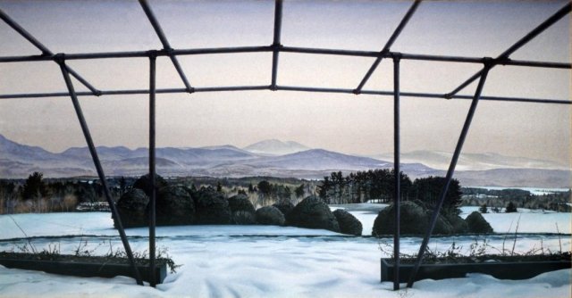The early work, which was shown at Boston’s Helen Shlein Gallery, was subtle in its undermining of Americana with a form of objective realism. The suburban subject matter, seemingly benign, had a compelling and ominous subtext. There was a freeze frame, cinematic essence as though they were establishing shots for a drama or television series like Twin Peaks.