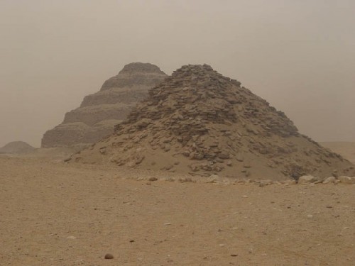 Located outside of Cairo is the rich archeological area of Saqqara where continued excavations seem to be discovering tombs and pyramids almost monthly. The Stepped Pyramid is located there. It is 4800 years old and apparently an early study model for the Pyramids at Giza built nearly 1000 years later. Though being encroached upon by the city's density, Giza is also on the outskirts of Cairo. This is where the Pyramids of Cheops, Chephren and Mycerinus are found as well as the Sphynx. There are also smaller pyramids which are the burial places of the pharoahs' queens.