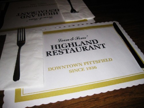 A month ago, when I picked up my friend Jim Manning at the bus stop in Pittsfield, I wanted to take him to the Highland. But it was Monday and closed. We ended up at the Country Kitchen in the mall with its huge buffet. Which is another story.