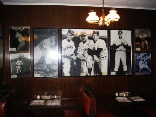 Slipping in anonymously, like a true food critic, I took a look around. It is enormous with three large rooms and a bar in the middle. There were vintage, blown up baseball photos. A classic of the Babe flanked by the Splendid Splinter and that guy who married Marilyn Monroe.
