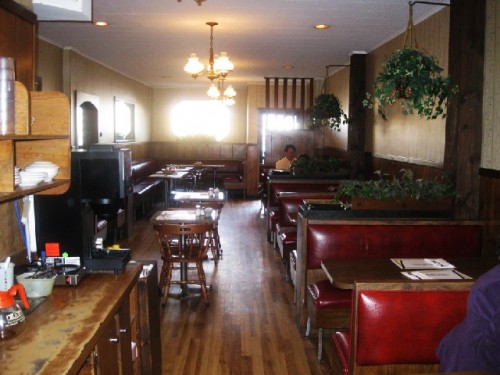 The place mat proclaimed that the restaurant had been established in 1936. There was still that depression era ambiance or should one just say depressing. Probably in the 1960s someone got the bright idea to put in a few hanging plants. The kind you don't have to water but need to dust now and then.
