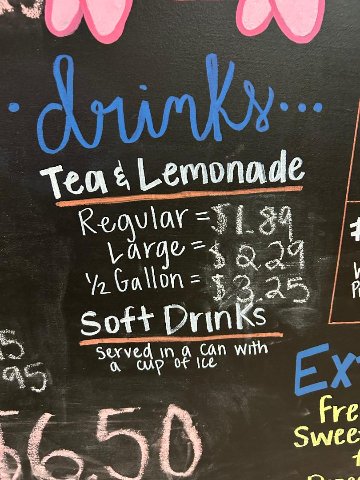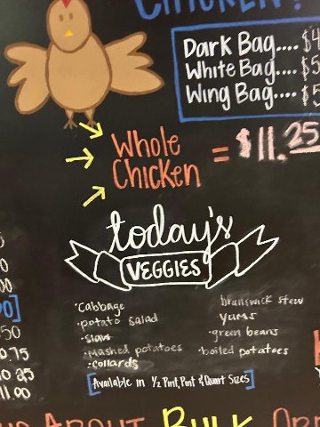 The young lady at the register was a cute as a button Southern Belle. I asked for hot sauce. It seems they have two, North Carolina vinegar based, and a sweet sauce. We got small containers of both.