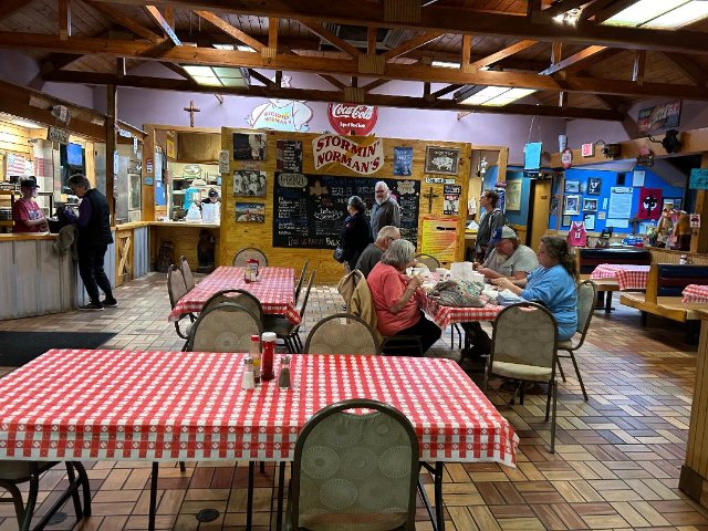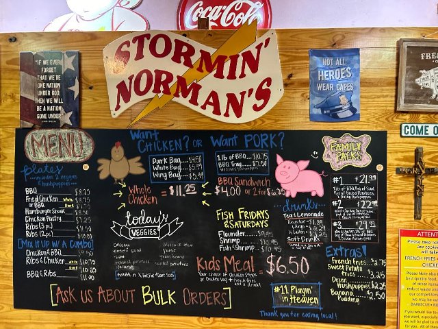 It was dark when we navigated across the street to Stormin Norman’s Barbecue.