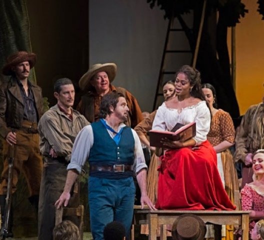 Polenzani began this performance singing "Quanta e bella" on a tiny bench outside the sand-colored curtain, emphasizing his outsider status in the opera's pastoral setting, His performance has gained in beauty as his voice has darkened a bit, and he remains a fine, impetuous comic actor. He summoned ravishing tone for "Una furtive lagrima" and finished the opera strong as Nemorino, with the help of a little magic grape juice, won the day and Adina’s heart.