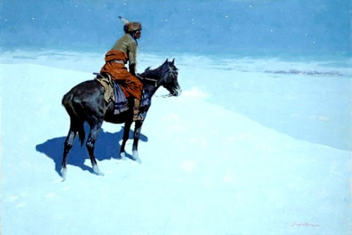 Which bothered me a bit. After all, Frederick Remington is not exactly politically correct. He was kindah the Normal Rockwell of Manifest Destiny. He had a John Wayne approach to the Last Frontier that predated Hollywood. He was more the era of the Wild West potboilers of the German fantasy writer Carl May. It was the Victorian age when Wild West shows were all the rage and Annie Oakley teamed up with Sitting Bull to tour the vaudeville circuit of Europe.