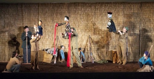 The first intrusions into the peasant market are communist soldiers proslytizing through puppets the evil of the warlord/landlord and the suffering of the peasants. Though the puppets were well handled, the story was too expected and sterotypical. Passionless, everything seemed to be by rote: The evil war lord, a sexually abused peasant girl, the corrupt official and an exploited peasant.
