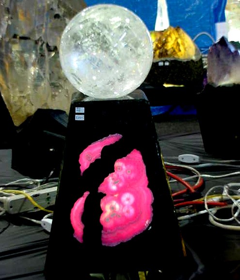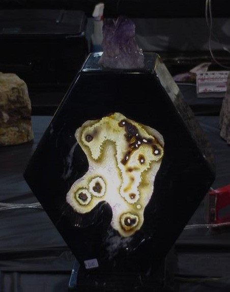 He was quick to acknowledge that the support he had received from the lapidary community was an important contribution to developing his work. In particular, he cited the collaboration he now enjoys with Asherah, (aka Tina), and Danny Duke the people behind Gemstone Mineral Interiors. As importers and wholesalers of raw gemstone, and the driving force behind the J&GM Exposition, they are well suited to market Hovave's work. They provide him with a resource of material. As they interacted with each other during my visit, the sense of mutual respect and warm affection felt much like family.