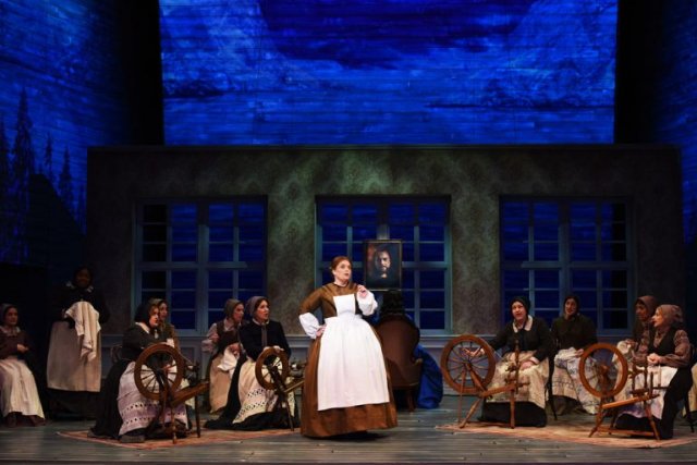 The tonal contrast of the stormy night in Act 1 with the early parts of Act 2 could not be much more distinct. Now, the women whose men are at sea spin thread in a bright room in Daland’s house. The women choristers sing the light and repetitive “Summ and brumm” (Buzz and humm). And as Wagner’s music had captured the rumbling sound of the sea in Act 1, he musically depicts the onomatopoeic laughter of the women in this scene.