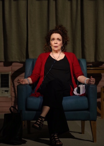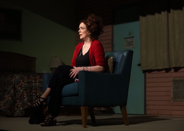 At the play's start, the interviewer and subject enter, but soon the interviewer has exited the set, a motel room. Dana lives in many of them as she travels, kidnapped by a criminal she has served as chaplain. Dana is a psychiatric social worker in hospice and prison wards. Like most people in the helping professions, she is a bit wacky herself.