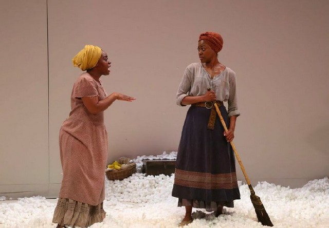 Slaves don't lose their voices here. They are joined by a lone cello, stroked and plucked by Lester St. Louis, whose music echoes spirituals and also the beat of the blues. He provides a perfect accompaniment for the spunky play, even as some slaves are sassed to run away.