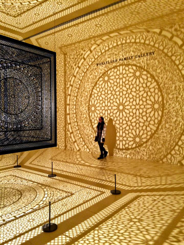 This environment feels both transitory and enduring, epitomizing a cathedral-like spirit defined by a deft use of illumination and shadow. In a period of radicalism and terrorism, this installation serves as a beacon for remembering and cherishing the sensitive beauty of the best of Islamic creative culture.