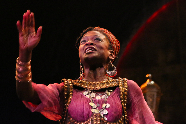 Brothels are a cheap way to create excitement, and this is the only play in which Shakespeare descends to use one. Yet the scene is absolutely delicious, particularly in the voice and gestures of Patrice Johnson Chevannes, who is the Madam. Marina, the daughter, is the only figure who does not accede to her wishes, and drives Madam around the bend.