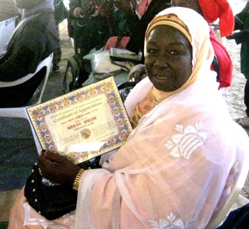 There was a tent set up to house an array of dignitaries including both African officials as well as the primary A3D officers; Mamadou Diop, President, Debra Crosby, a video artist and producer, Director, and Don Goldman, a consultant to the printing industry, Executive Director. The ceremonies were conducted in Wolof, the language of Senegal, as well as French and smatterings of English. The A3D officers presented awards to Solo, Ndeye Mbow, the director of a school for girls to which sewing machines were contributed, and others who had contributed to the ongoing projects. Eventually, A3D hopes to provide desks for all of the students.