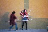 The exhibition also features a large selection of No Movies—Asco's signature images created for the camera that imbue performance art with a cinematic feel. As a staged event, the artists would play the parts of cinema stars, and the resulting images were then disseminated as if they were stills from “authentic” Chicano motion pictures. No Movies envision the possibility of Chicanos starring in and producing a wide variety of Hollywood films while simultaneously highlighting their relative invisibility. Essentially, Asco created images to advertise films that did not exist and circulated the imagery in a variety of inventive and innovative ways: No Movies were distributed to local and national media outlets, including film distributors, and reached an international audience through mail art circuits. Asco’s spontaneous actions of the early 1970s were, by the late 1980s, modified into staged ensemble pieces that could highlight the interdisciplinary interests and talents of the group members.