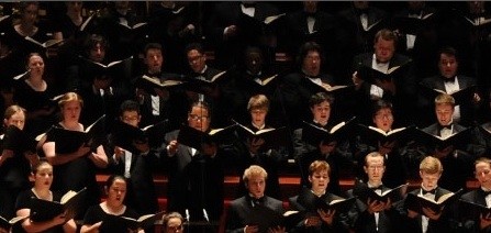 The Westminster Symphonic Choir sang as one, a rare feat for choral groups. The velvety tone emerged from mouths that opened at the same time and to the same height. Joe Miller, conductor of the choir, is a wizard to produce this quality.