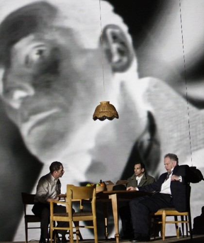 Projected video images of the actors in various scenes were sprinkled throughout the show. It was unclear whether the projections were Big Brother or we are Big Brother. Large images suggested importance, yet seemingly lesser pieces of the narrative were projected large. Though visually interesting, there was a disconnect here between the technology and the narrative.