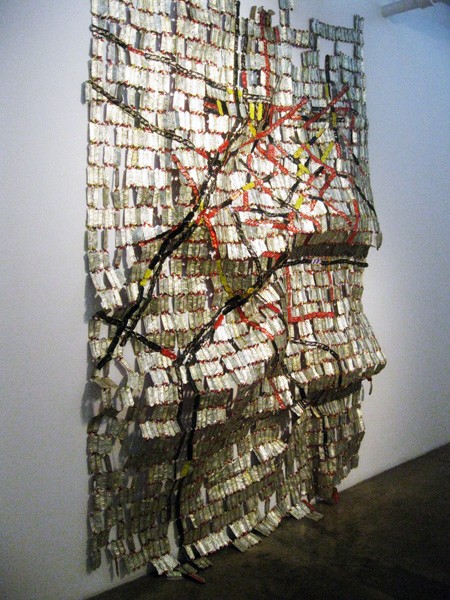 Yet again we were floored to see a sumptuous, stunning exhibition of new works by El Anatsui his second for Jack Shainman's Gallery. Coming on the last few days of the show, there had been a work displayed in Shainman's booth during the art fairs, most of the works had sold. The prices for the few that remained averaged $650,000 each.