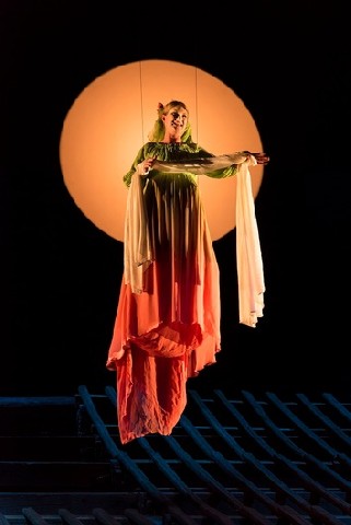 But no one has seen a production of the Oratorio-turned-opera quite like the Canadian Opera's production at the Brooklyn Academy of Music. It originated at La Monnaie in Brussels in 2009. In this adaptation of Semele's migration to the world of Jupiter, the yin and the guo, or cause and effect are emphasized. Semele's actions determine her fate. If we missed her flaming end in other productions, production elements brought to the story by Zhang more than make up for fire. Among them are Somnus' habitation of the temple roof with a grand doll leaning precariously forward, perhaps Semele herself in her out-sized ambition to become immortal. A donkey was kinky and also charming. A dragon guards and ultimately engulfs Semele. Sumo wrestlers punctuate an act's conclusion. Images not immediately interpretable still amuse and befuddle comfortably.