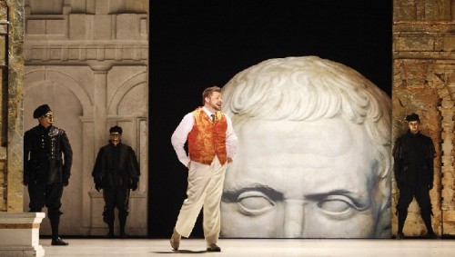 Sex is central to her campaign and you could mistake the opera at certain moments as a Feydeau farce as would-be lovers hide behind screens and under beds. The object of their desire is not the unalluring Agrippina (ambitious people are seldom really sexually attractive), but the young Poppea, a real minx who seems to have enthralled half of Rome, including the Emperor, Ottone, the soldier who saved him, and Nero. It all improbably turns out happily: Nero is proclaimed Emperor-designate, Ottone and Poppea are married and Claudio and Agrippina are reconciled. And as the cast sings the expected final anthem to Rome and its happiness, the surtitles remind the audience of that fact that the mad Nero will do them all in one by one after the curtain falls.