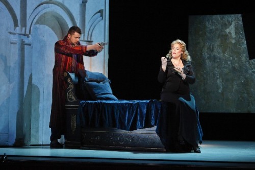 Later he is shown to be a martini-swilling, cocaine-sniffing basket case: yet he is the man who would be Emperor. Trudgen uses his fleshy body to his advantage in his portrayal of the ultimate mama’s boy, and when he first sings, his high countertenor, coupled with his corpulence and his incestuous connection with his mother combine to create an image and a sound of nature assaulted and deformed. (I heard a few nervous laughs in the audience.) Trudgen, who possesses a richly colored instrument, deserves praise for the courage it required to play the role the way he does.