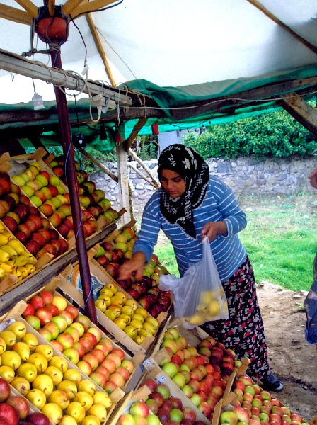 Breakfast featured a local specialty, keskek, made with chickpeas, wheat and meat. Other offerings on the buffet included Amasya's famous sweet crisp apples, tahini halva, yogurt, honey, feta cheese, olives, tomatoes, cucumbers and variety of breads. On the way out of town we stopped by a roadside stand stacked with apples and pears and stocked up for our trip to the heartland, the Anatolian central plateau.