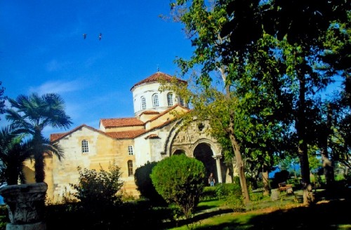 A 7 a.m. flight took us from Istanbul to Trabzon. At the end of a 90-minute trip we landed in this coastal Black Sea town, once the seat of the Trebizond Empire founded in 1204 by Alexius Comnenus. It was clear and sunny, a perfect day to visit the Sumela Monastery up in the mountains, 54 km south of Trabzon. We drove through pine forests and hazelnut groves to reach the steep stairs of the monastery, set against the rocks and now situated within a national park. We viewed frescoes as we climbed up to the buildings against the sheer cliff, and admired the grand panorama down below.