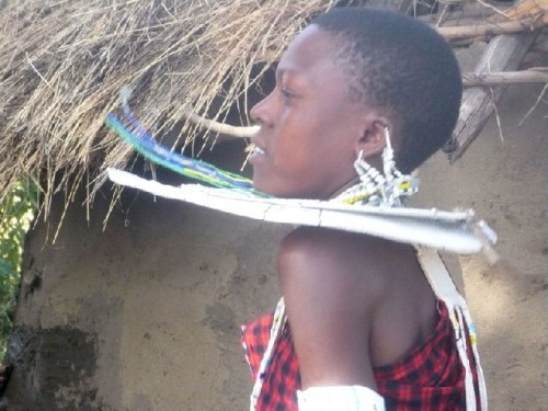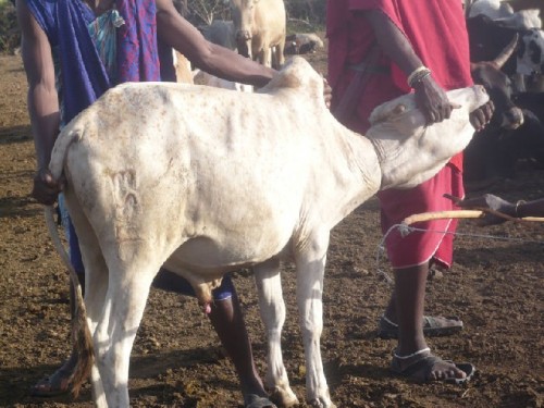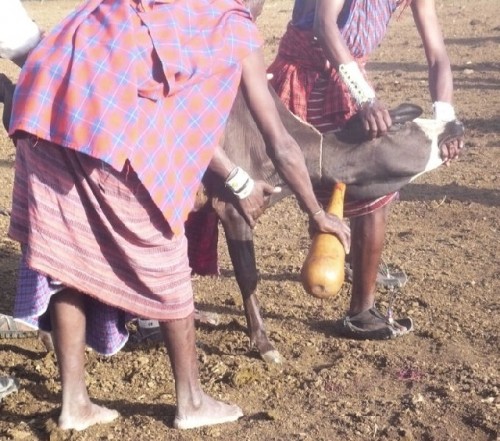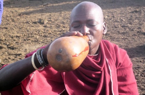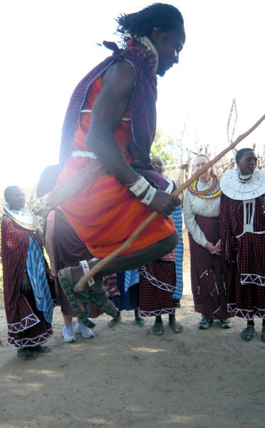 The next morning’s experience was a day in the life of a Masai village, where we witnessed some long-standing Masai traditions. We were met by the chief of the boma, along with his brother, wives, and many children. Karibu (“welcome”), said all with convincing smiles. The first activity of the day was opening the bloodstream of a cow by shooting an arrow to the jugular vein. Two herders held down a healthy-looking cow while the chief shot the arrow, unfortunately missing the target. The wound was quickly sealed with mud and saliva, and the cow replaced. This time the arrow hit the target; blood poured out into a calabash used to collect and drink it. Although we declined to share this “delicious” morning drink, we were amazed at the natives’ ingenuity in acquiring protein from their cattle in a sustainable way.