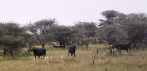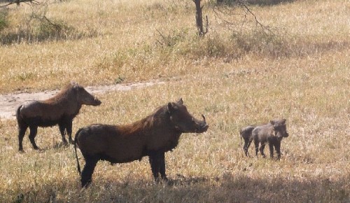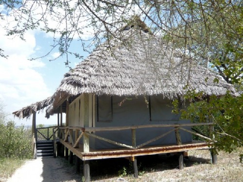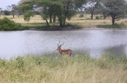 Before heading to our camp, we embarked on a game-viewing drive inside the park. During the course of the afternoon we saw male impalas with beautiful horns, Thompson gazelles with black-striped white rears, cape buffalo with egrets hovering around in search of insects startled out of hiding by the animal’s heavy tread, elephants solo or in herds, a family of warthogs, olive baboons (as opposed to yellow ones), eagles, and even our first sighting of a lion watching a giraffe from a distance; all within a landscape filled with a symphony of bird sounds.