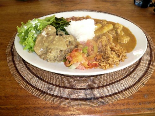 A cooking demonstration, followed by a lunch of traditional Tanzanian specialties, was memorable. The menu was the chef’s choice of dishes from several tribes — banana and vegetable stew, chicken in coconut sauce, beans, spinach, and pilaf seasoned with seven spices from Zanzibar. A salad of tomatoes, onions, green pepper, and cucumber with mild chili pepper, as well as polenta, accompanied the dishes. In parting, the chef gave us a book with these recipes.
