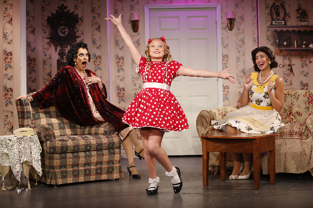As the curtain parts we see Judy Denmark, an all-American looking housewife, with a husband we never see but only hear about running around her apartment. Dressed and coifed, on a set to match – both are straight out of the '50s – Denmark is busy answering call after call from people praising her daughter Tina. Setting the comedic tone of the play with each call Denmark liltingly answers, in a melodious sing-song voice “This is Tina’s mother.”