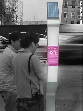 With no protection from the weather or even cacophonous city sounds, this design is more of an exposed interactive sign than a private phone booth. No Superman quickchange here. Minimalist in form, except for the potential advertising, its shape is reminiscent of the monoliths in 2001, A Space Odessey. With little or no visual personality, it can be in any city or town anywhere. Unlike Billy Joel, it has no New York state of mind. And it does not seem to be capable of morphing as new technology develops, only be replaced.