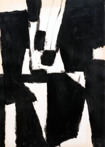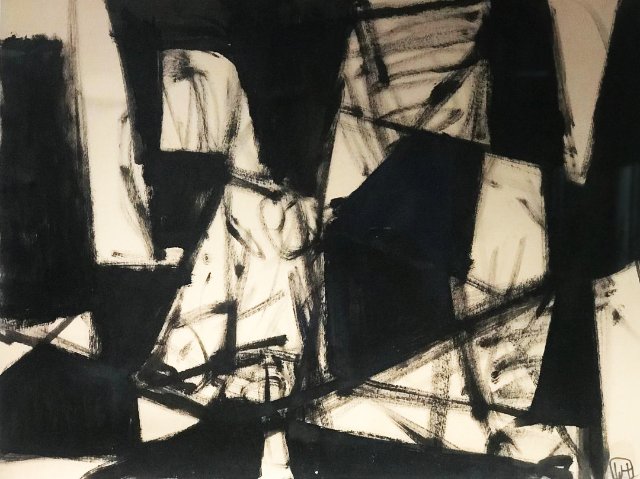 In March, 1962, James Beck of “ArtNews” saw Holst at “a point of decision in black and white oils. Some … ‘purist’ in execution... the bulk are more loosely handled.... the most successful .... has a kind of logical irrationality.” To me, that sounds like math in the music or sextant in the storm. “Logical irrationality” is a verbal incarnation of Holst’s energy, tension, and ultimate balance in push and pull – where he achieved grace.