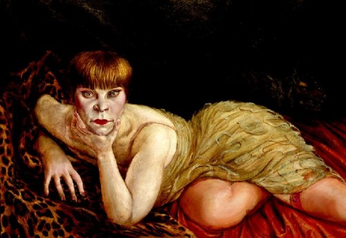 The exhibition included portraits which were shocking and unforgettable. From the Art Gallery of Ontario is “The Businessman Max Roesberg, Dresden.” The eyes in particular are haunted and spooky. The face is rendered in a translucent, waxy manner that is impossible to reproduce. Another heart stopping image is “Reclining Woman on Leopard Skin” 1927. In an uncanny manner this Tiger Lady reminds one of the unfortunate New Yorker, Jocelyn Wildenstein, famously rendered grotesque, as a result of too many surgeries.