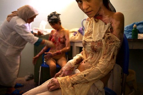 When we look back at 2010 and its Biennial future generations will ask how art reflected the Age of Obama and its two wars in Iraq and Afghanistan. He didn't start them but their horrors continue under his watch. This is noted by work from two photographers, both horrific. Nina Berman records the tragic love between the grotesquely damaged Marine sergeant Ty Ziegel and his high school sweetheart Renee Klein. Stephanie Sinclair exhibits documentary photographs of women in Afghanistan who out of brutal desperation have mutilated themselves through self-immolation.