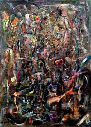Of the twelve in Miller's show the best regarded artist is Guston. But not for this work which was from his abstract expressionist phase. He was largely reviled by the art world establishment when he returned to figuration in his late work.