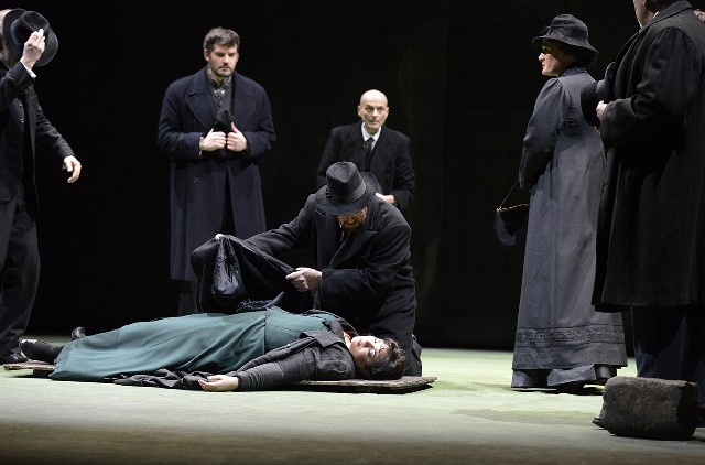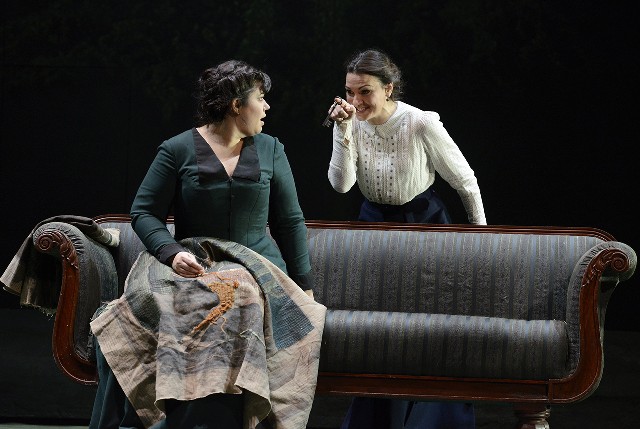 Hildegard Bechtler’s sets and costumes were dour and dreary, all muted dark colors, grays, blues and blacks, which were appropriate for both the rural Russian setting and the story. But her failure to include the river, which runs by the Kabanov household and plays such an important part in the story and the music, until the very last scene, was a mistake and a missed opportunity. Like the Mississippi in “Show Boat,” the Volga just keeps a-rollin’ along.