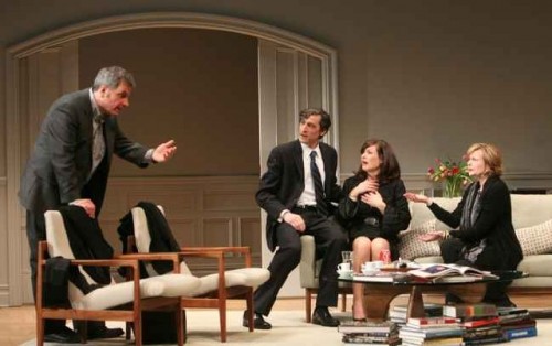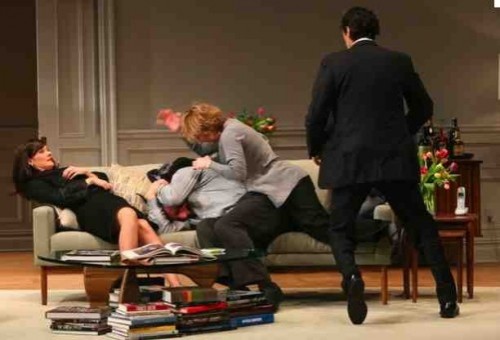 God of Carnage begins when two couples meet to negotiate a conflict between their two pre-pubescent sons. One of them has stabbed the other with a stick. The most politically attuned parent uses the word ‘armed,’ which is immediately taken off the table by the lawyer parent and changed to ‘furnish. Boys will be boys, but must adults be ‘boys’ too? In God of Carnage this is the net result.