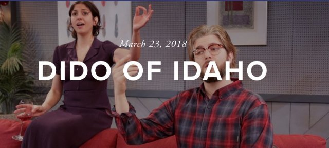 Dido of Idaho runs through April 8 at Ensemble Studio Theatre’s Curt Dempster Theatre (549 West 52nd St., between 10th and 11th avenues). Evening performances are at 7 p.m. Mondays and Wednesday through Saturday, and at 5 p.m. Sunday; matinees are at 2 p.m. Saturday. Tickets are available athttp://www.ensemblestudiotheatre.org/current-season-1/2018/5/9/dido.
