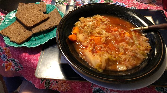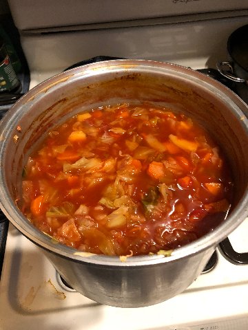 Set to a low boil for three hours it came together nicely. It will be served with hearty German bread.