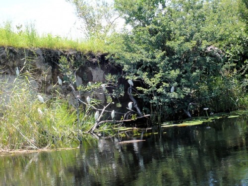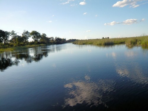 A minibus took us to Kasane airport for our flight to Namibia. In a 12-seater aircraft we flew to the Kwando airstrip and walked about ten minutes through sand to get to the boat that delivered us to border control and then to our lodge. The boat ride on the Kwando River (Chobe becomes Kwando in Namibia) was one of the most enjoyable parts of the entire trip. Namibia on the right and Botswana on the left, our pontoon boat moved slowly creating small ripples over the calm waters. Reflections of trees and clouds shimmered on the river's surface as the boat went in and out of lagoons teeming with birds. An avian spectacle included kingfishers in front of their mud holes; weaver birds in nests that looked like thatched roofs perched on trees, bee-eaters, yellow-billed and red-billed hornbills, African Jacana and others in a feeding frenzy along the river's banks.