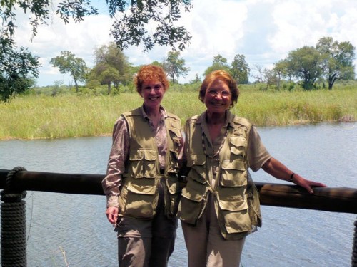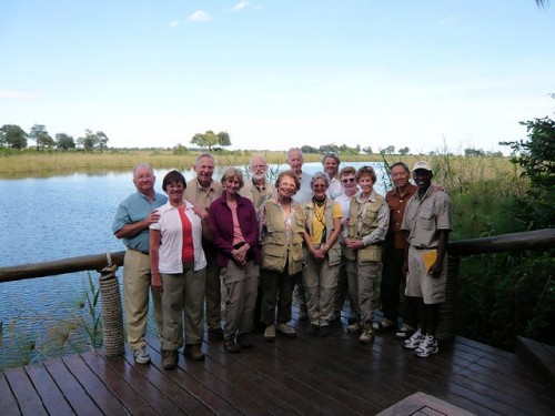During a final pontoon boat cruise our guide treated us to garlands and necklaces he made from water lilies. We spotted eagles on trees, hippos in dusk and treasured yet another spectacular sunset. The chef outdid himself for our goodbye dinner: Pot au feu with eggplant, carrots, onions and cloves, polenta, baked sliced squash with thyme, and for dessert yogurt mousse with apricot sauce. The talented staff danced and drummed for us. Afterwards over a cup of tea of our choice, including bush tea made from russet bush willow, we gazed at stars in the expansive midnight blue overhead, thus ending our memorable trip to Namibia.